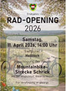 Samstag, 11. April 2026, 14:00 Uhr Treffpunkt: Hollitsch Besichtigung der neuen Mountainbike-Strecke Schrick mit der Möglichkeit, diese zu testen Für Verpflegung ist gesorgt. |
