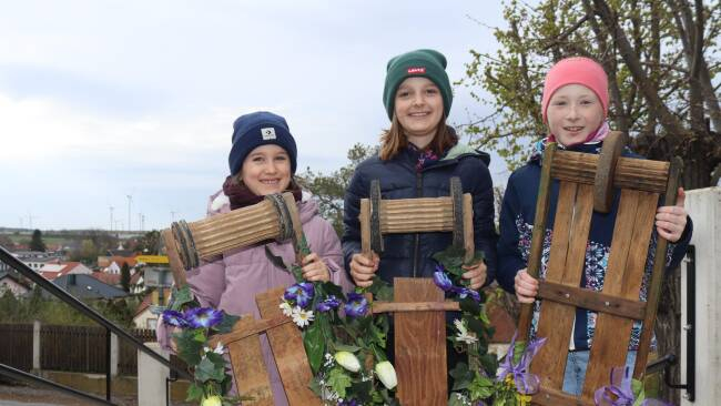 Ab Gründonnerstag waren sie wieder unterwegs – die Ratscherkinder mit ihren geschmückten Ratschen, da der Legende die Kirchenglocken ja nach Rom geflogen sind. Die Rekordzahl von knapp 40 Kindern aus unserer Ortschaft nahmen heuer an diesem wunderschönen Brauchtum teil. |